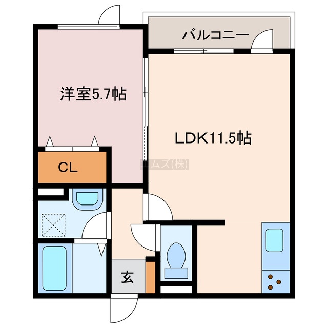 1LDK(43.47m²)└ LDK11.5帖 洋室5.7帖