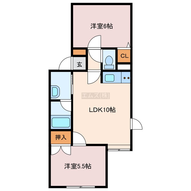 2LDK(45.81m²)└ LDK10帖 洋室6帖 洋室5.5帖