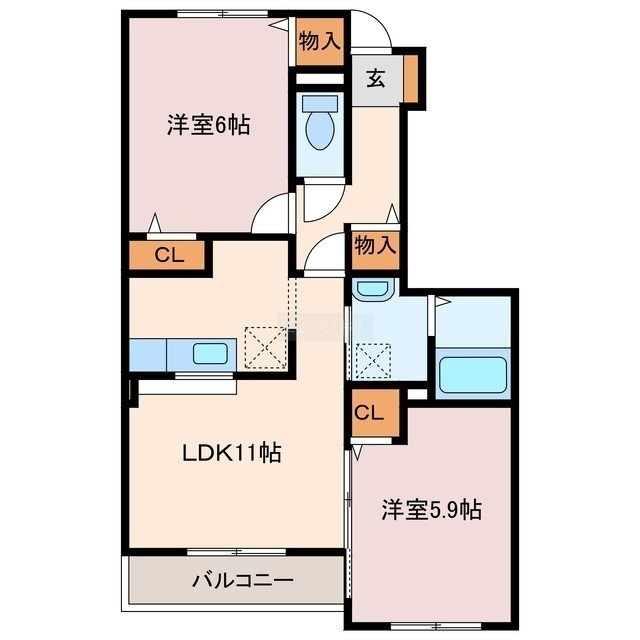 2LDK(52.57m²)└ LDK11帖 洋室6帖 洋室5.9帖
