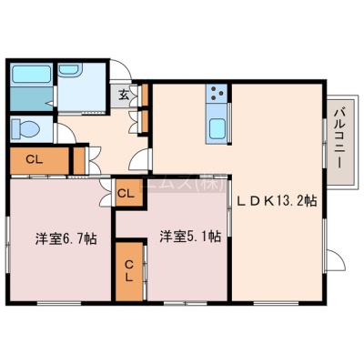 2LDK(58.42m²)└ LDK13.2帖 洋室5.1帖 洋室6.7帖