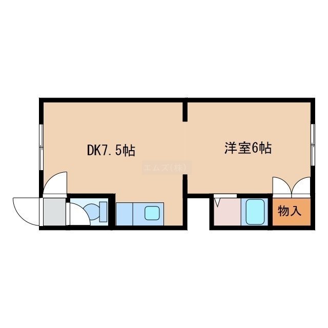 1DK(29.74m²)└ DK7.5帖 洋室6帖