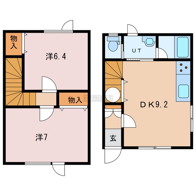 2DK(52.92m²)└ DK9.2帖 洋室7帖 洋室6.4帖