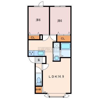2LDK(56.37m²)└ LDK14.9帖 洋室6帖 洋室6帖