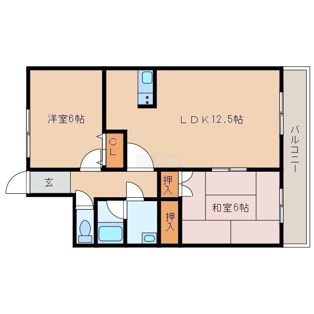 2LDK(48.6m²)└ LD10帖 K2.5帖 洋室6帖 和室6帖