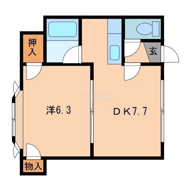 1DK(27.75m²)└ DK7.7帖 洋室6.4帖