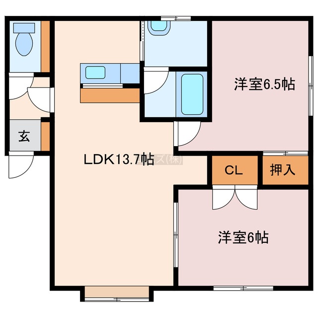 2LDK(57.36m²)└ LDK13.7帖 洋室6帖 洋室6.5帖