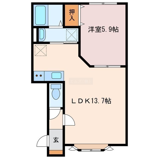 1LDK(42.88m²)└ LDK13.7帖 洋室5.9帖