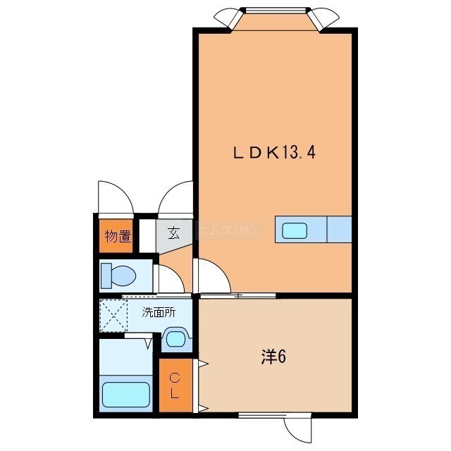 1LDK(45.4m²)└ LDK13.4帖 洋室6帖