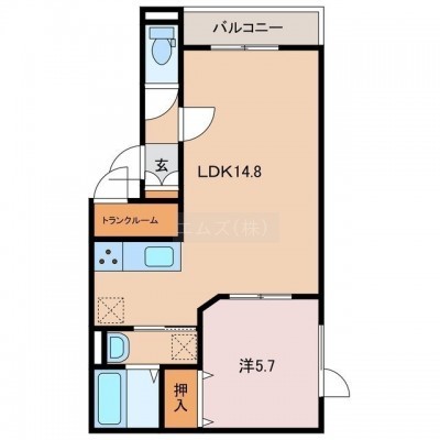 1LDK(45.69m²)└ LDK14.8帖 洋室5.7帖