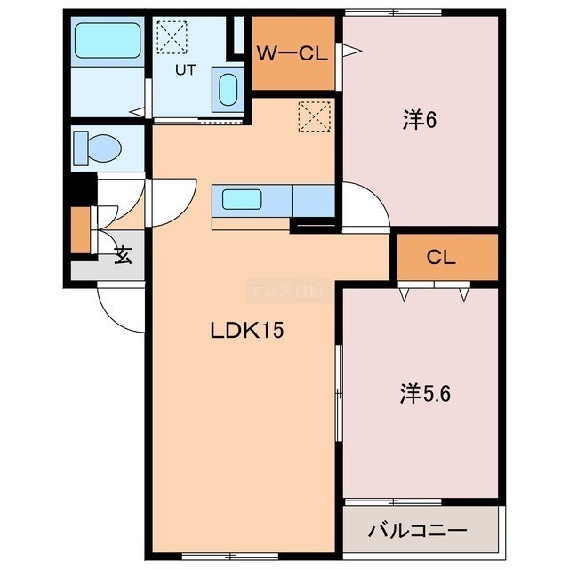 2LDK(57.4m²)└ LDK15帖 洋室6帖 洋室5.6帖