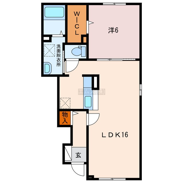 1LDK(50.55m²)└ LDK16帖 洋室6帖