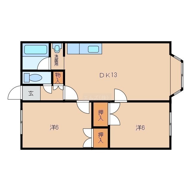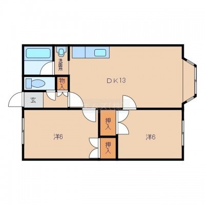 2LDK(48m²)└ LDK13帖 洋室6帖 洋室6帖