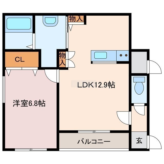 1LDK(46.35m²)└ LDK12.9帖 洋室6.8帖