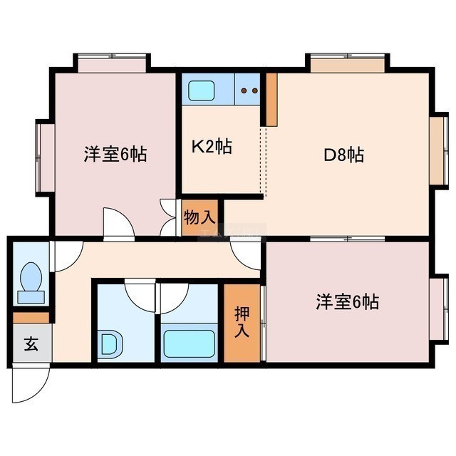 2DK(51.03m²)└ DK9.5帖 洋室6帖 洋室6帖