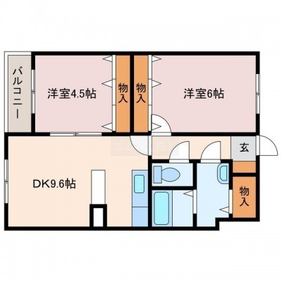 2LDK(53.16m²)└ LDK9.6帖 洋室6.8帖 洋室4.5帖