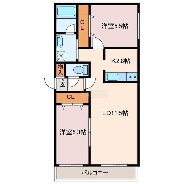 2LDK(54m²)└ LD11.5帖 K2.8帖 洋室5.3帖 洋室5.5帖