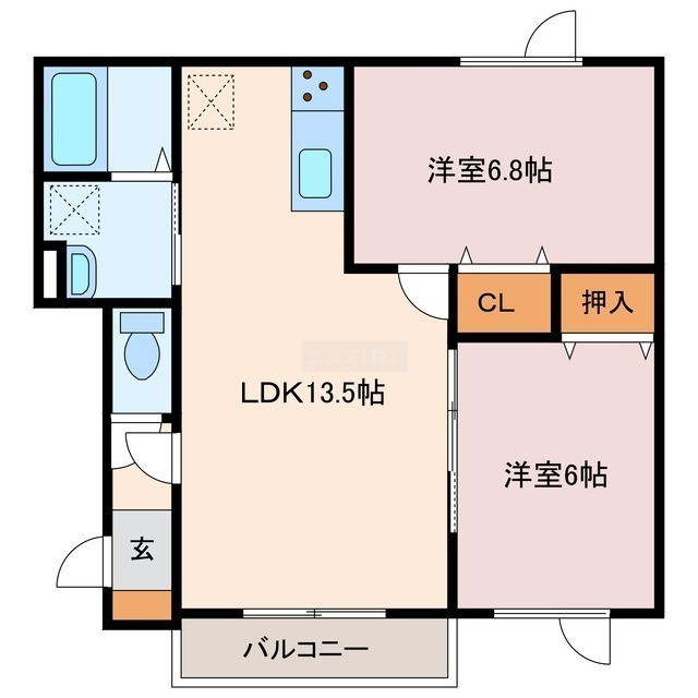 2LDK(55.94m²)└ LDK13.5帖 洋室6.8帖 洋室6帖