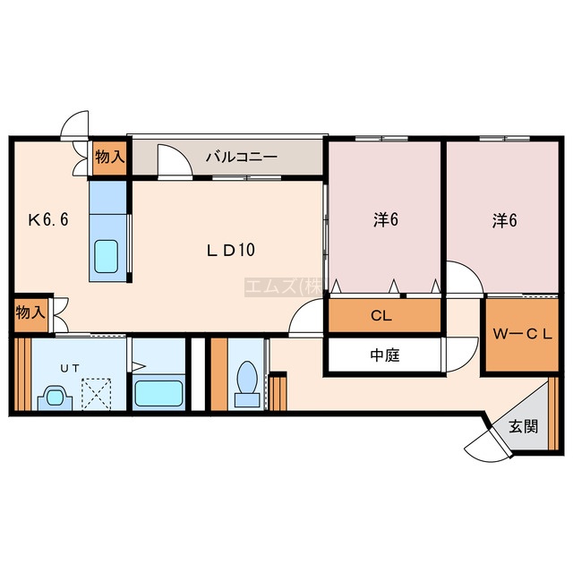 2LDK(59.62m²)└ LDK16.6帖 洋室6帖 洋室6帖