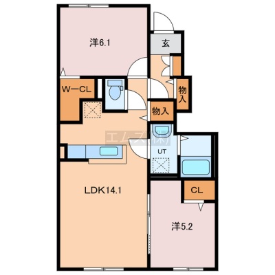2LDK(55.87m²)└ LDK14.1帖 洋室6.1帖 洋室5.2帖