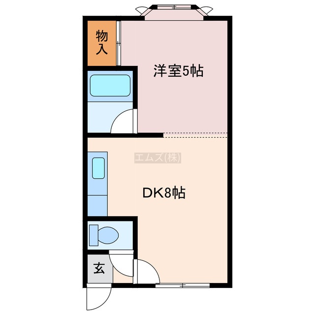 1DK(28.37m²)└ DK8帖 洋室5帖