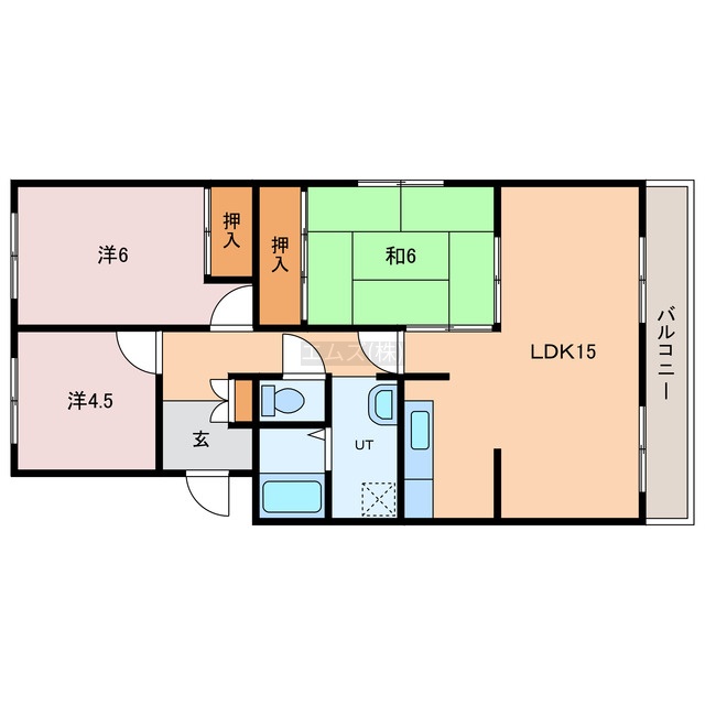 3LDK(70.83m²)└ LDK15帖 洋室6帖 洋室4.5帖 和室6帖