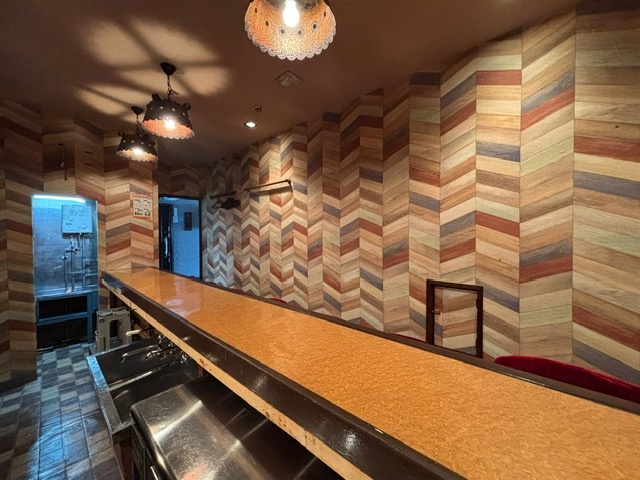 ここに注目!ヘリンボーン柄のクロスが印象に残る、隠れ家的な雰囲気の店舗です。 お一人でお店を始められる方にもちょうどよい席数です。 お客様が入退店しやすい1階の店舗は人気のため、 内覧希望の方はお気軽にお問い合わせください。