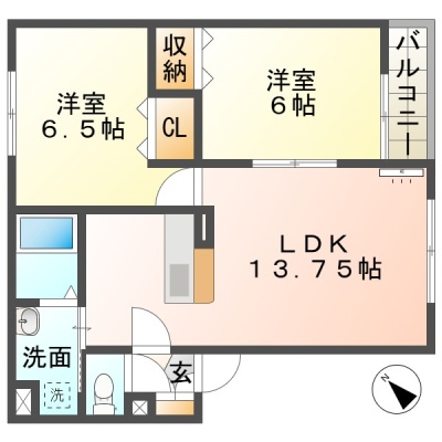 2LDK(55.28m²)└ LDK13.75帖 洋室6.5帖 洋室6帖