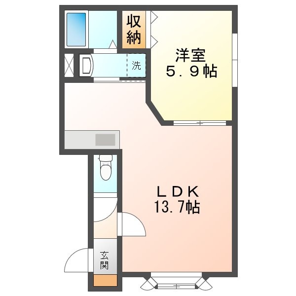 1LDK(42.88m²)└ LDK13.7帖 洋室5.9帖