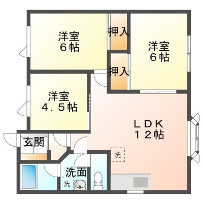 3LDK(60.86m²)└ LDK12帖 洋室4.5帖 洋室6帖 洋室6帖