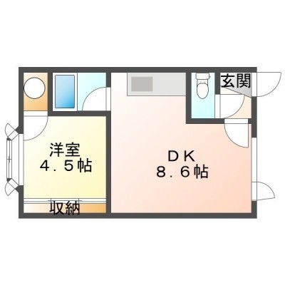 1DK(25.67m²)└ DK8.6帖 洋室4.5帖