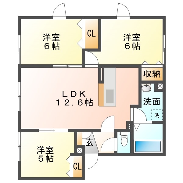 3LDK(65.49m²)└ LDK12.62帖 洋室6帖 洋室6帖 洋室5帖