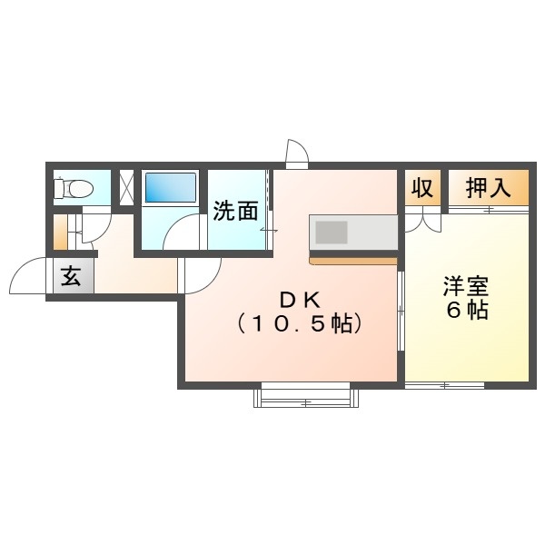 1LDK(38.47m²)└ LDK10.5帖 洋室6帖