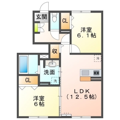2LDK(60.7m²)└ LDK12.5帖 洋室6.1帖 洋室6帖