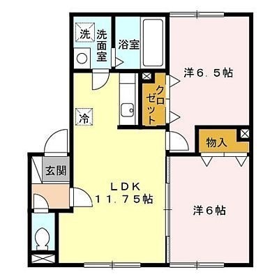 2LDK(53.98m²)└ 1階:LDK11.7帖 洋室6.5帖 洋室6帖