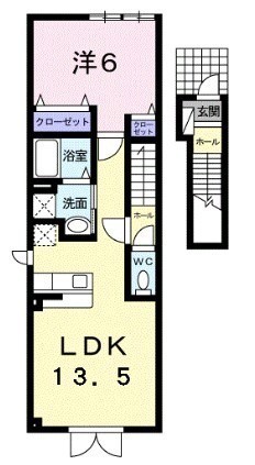 1LDK(45.39m²)└ 2階:LDK13.5帖 洋室6帖