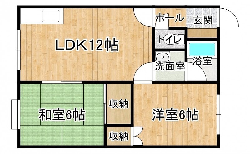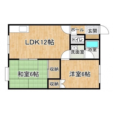 2LDK(48.6m²)└ 2階:LDK12帖 洋室6帖 和室6帖