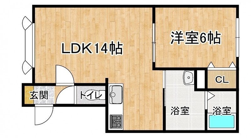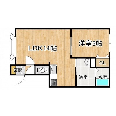 1LDK(44.67m²)└ 1階:LDK14帖 洋室6帖