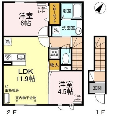 2LDK(57.56m²)└ 2階:LDK11.9帖 洋室4.5帖 洋室6帖