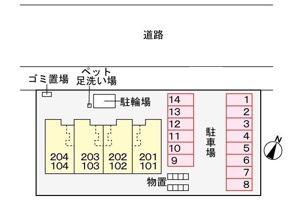 所在階/建物の階建 1階(102) / 地上2階建 総戸数 8戸 主要採光面 南東 構造 木造 契約期間 2年間 住宅保険 1万8,000円(2年間) その他費用 毎月の費用 - 2台目駐車場料:2,200円