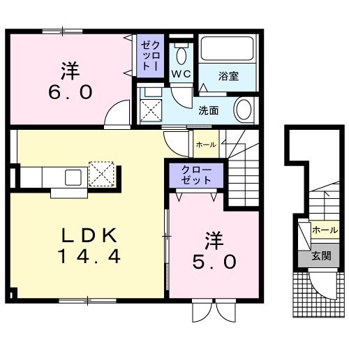 2LDK(58.57m²)└ 2階:LDK14.4帖 洋室6帖 洋室5帖