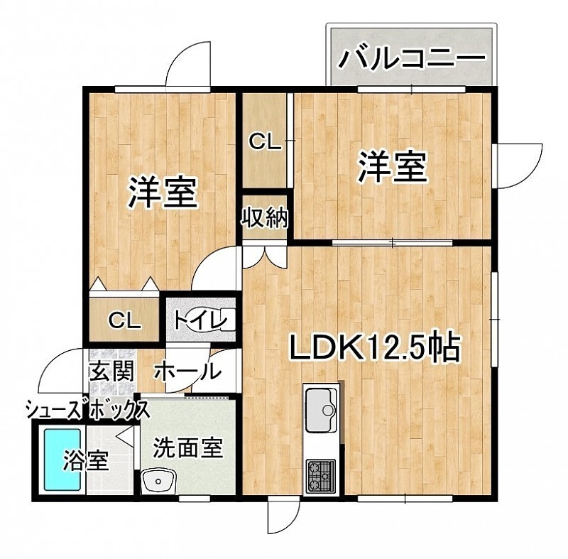 2LDK(56.47m²)└ 1階:LDK12.5帖 洋室6帖 洋室5.8帖