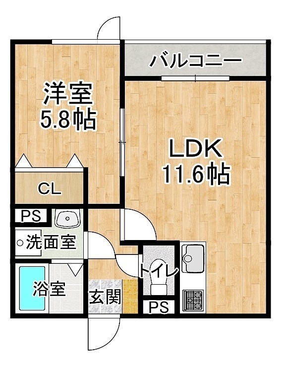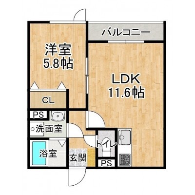 1LDK(40.16m²)└ 1階:LDK11.6帖 洋室5.8帖