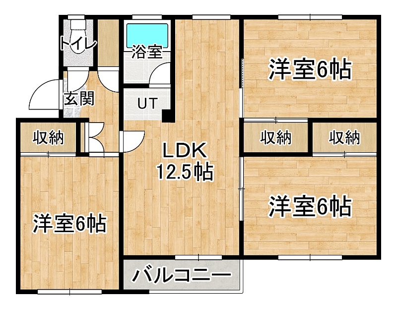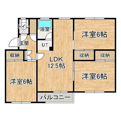 3LDK(65.65m²)└ 1階:LDK12.5帖 洋室6帖 洋室6帖 洋室6帖