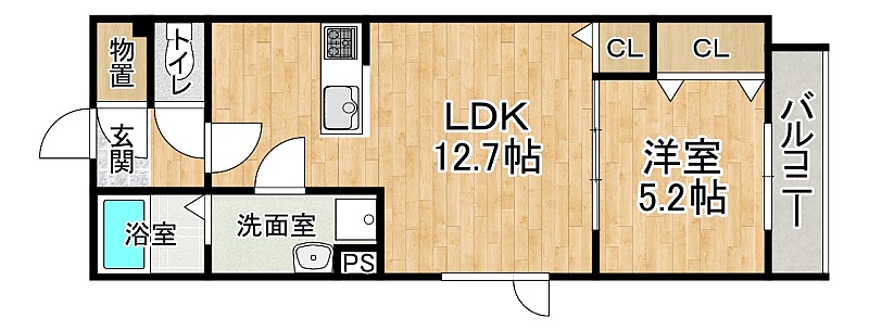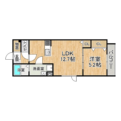 1LDK(42.34m²)└ 2階:LDK12.7帖 洋室5.2帖