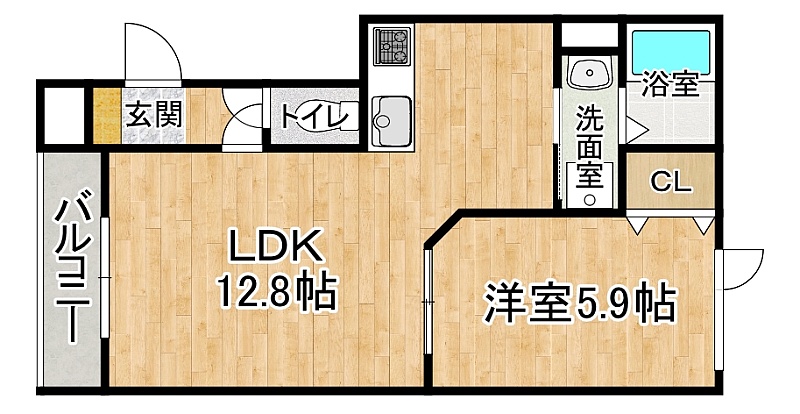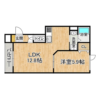 1LDK(40.9m²)└ 1階:LDK12.8帖 洋室5.9帖