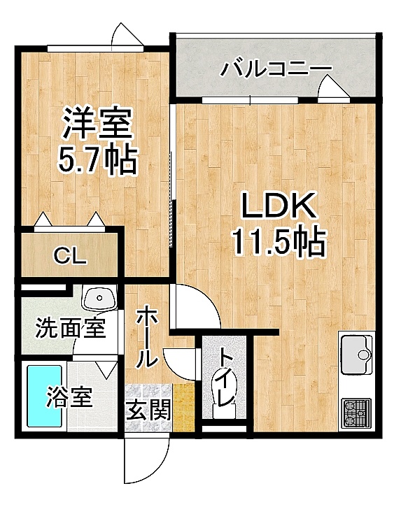 1LDK(43.47m²)└ 1階:LDK11.5帖 洋室5.7帖