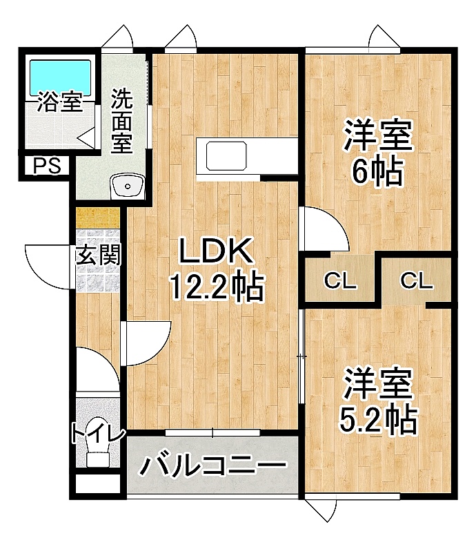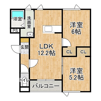 2LDK(51.15m²)└ 2階:LDK12.2帖 洋室6帖 洋室5.2帖