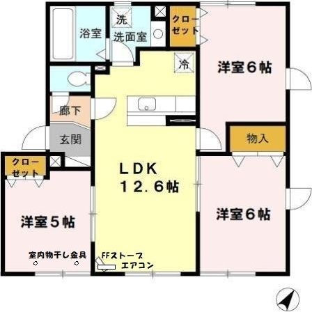 3LDK(65.49m²)└ 2階:LDK12.6帖 洋室6帖 洋室6帖 洋室5帖