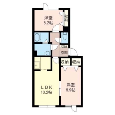 2LDK(55.7m²)└ 2階:LDK10.2帖 洋室5.2帖 洋室6.9帖
