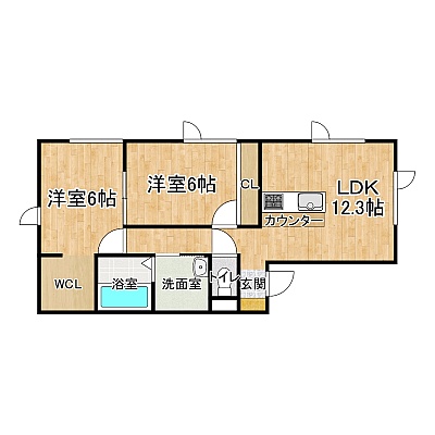 2LDK(58.38m²)└ 1階:LDK12.3帖 洋室6帖 洋室6帖